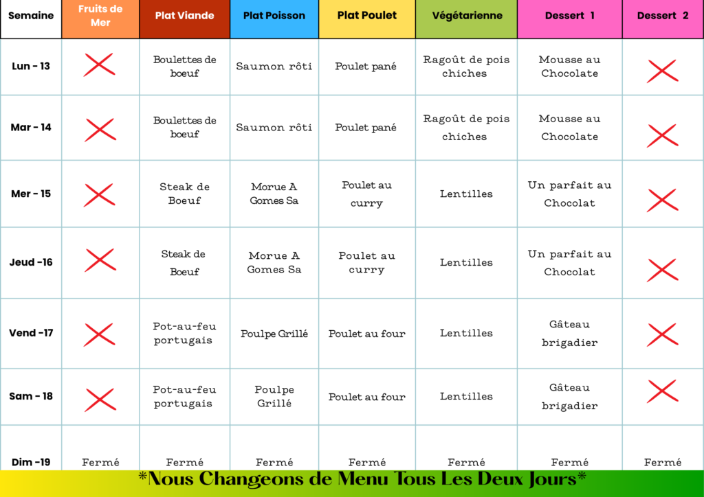 Les images présentes sur nos menus sont des illustrations figuratives pour vous aider dans votre choix. Les plats servis peuvent varier en présentation.
